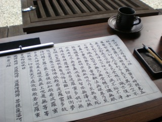 朝食後は写経です。本当は昨日やる予定だったのが、のんびりしすぎてこの時間に。。集中して書いていたらあっという間に3時間ほど過ぎていました。。写経はお納めしていくことにし、住職にご祈願もしてもらいました。