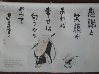 部屋に貼ってあった言葉。『感謝と笑顔があれば、幸せは向こうからやってきます』。今の私へのメッセージのような気がしてなりません。