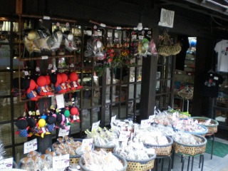 通りのあちこちで見かけるさるぼぼ。町の至るところで見かけるので、だんだん可愛く見えてきます。