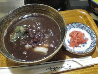 さて、朝から歩きつかれて休憩したいところですが、どのお店も結構混雑。。外からは店内の様子がまったくわからず、少し不安もありましたが、田近屋・茶屋三番町に入ってみることにしました。入り口の扉は低く狭くなっていますが、店内は意外と広い。中には囲炉裏のある座敷もあり、昔懐かしい雰囲気で田舎ぜんざい(600円)をいただきました。