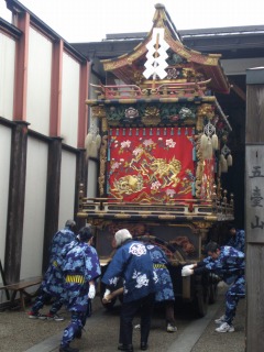 からくりで有名な三番叟(さんばんそう)。屋台が蔵から出され始めました。