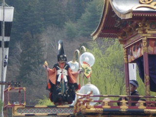移動中の鳳凰台(ほうおうだい)。中段の赤・濃紫・黄のオランダ古渡りの幕が目をひきます。