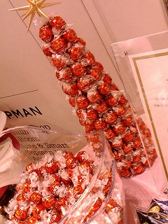 クリスマスっぽく、ツリーの形に飾られたリンツのリンドール・ミルク。チャプチーノのカップケーキは見た目よりも甘すぎず美味しかったです。
