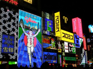 今日は夕方に大阪入り。お腹も空いてきたので、ホテル近くの道頓堀へと出かけてみました。いつもの方向音痴のせいで、アメリカ村から抜け出せなくなってしまったりもしましたが、なんとか到着。グリコの看板を見つけてホッと一息です。