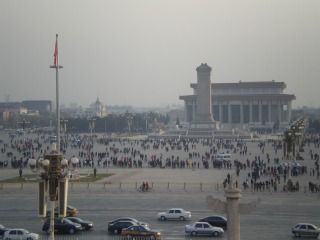 楼上からは向かいにある天安門広場を眺めることができます。天安門事件の時には、この大きな広場が人でいっぱいになり、戦車が走っていたのだと思うと、平和な今にほっとします。