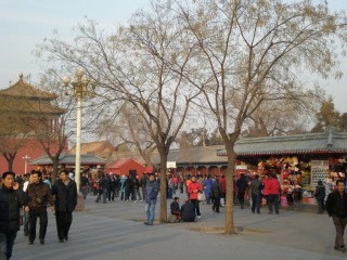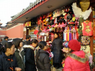 楼上を出た後、天安門をさらに奥の方へと進みます。道の両脇には資料館のような建物やお土産屋さんなどがずらりと並んでいました。