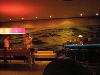 中に入ると、1Fは音楽がガンガンと鳴る賑やかなフロアで、2Fは落ち着いたバー。フロアでまるで違った雰囲気になっていました。2Fではビリヤードを楽しんでいる人、夜景を見ながらカクテルを楽しむ人・・・タイとは思えぬ雰囲気です。