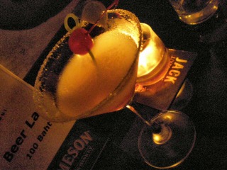 注文したカクテルは1杯250バーツ(約1,000円)。日本並みの料金。って・・・さっきのマッサージと変わらない値段・・・でした。。