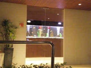 空港のトイレ。入口には熱帯魚が泳ぐ水槽があり、リゾート風です。