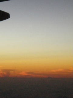 バンコク→成田往きは23時半出発。。かなり眠い。。座席に座ったと同時に爆睡です・・・。気付いた時には窓から朝焼けが見えました。