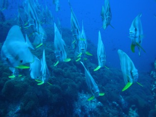 今年のサムイ・1本目は、South West Pinnacles 。サムイではおなじみのユメウメイロ、イエローバンドフュージュラー、ササムロの群れも健在。久しぶりに潜ってみると、魚の大きさに改めてビックリ。この海の魚たちはどれも大きくてぽっちゃりしています。。