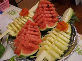 そして、食後にはフルーツも。写真はお誕生日バージョン・特別カットされたスイカ