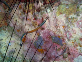 サンゴの隙間に隠れるようにいたアヤメエビス。Light House にて。