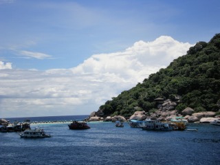 ナン・ユアン島。島付近はダイビングポイントでもありますが、シュノーケリングのポイントとしても有名です。ダイビング中、ふと上を見上げるとシュノーケラーたちがはるか頭上を泳いでいるなんてこともありました。