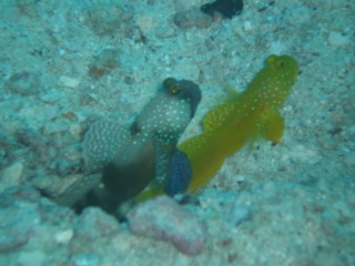 ギンガハゼのペアとレッドマージンシュリンプゴビー。かなり近寄ってもまったく逃げません。。Sabai dee Rpck にて。