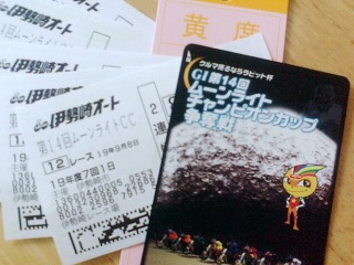 昨日は友達からのお誘いでGⅠムーンライトチャンピオンカップ観戦バスツアー に行ってきました。参加者はオートレース・ファンらしき男性ばかり・・・オートレース未経験の私たち2人はかなり浮いた存在。。