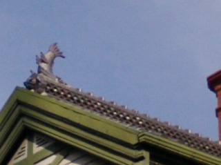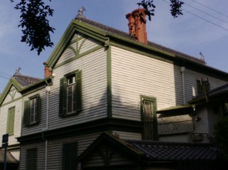 異人館通りのシュウエケ邸。英国人建築家ハンセル氏が1896年(明治29年)に自邸として建築された建物だそうです(入館料¥500-)。屋根の上のシャチホコが気になります。。