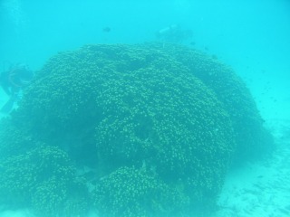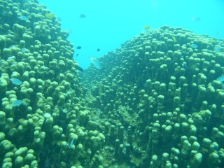 約8mあるという大きなパラオハマサンゴ。この大きさになるには何年かかっているんでしょ。。よく見ると、ところどころ折れてしまっている部分があり残念でした・・・