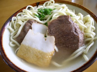 はニンニクがきいていて美味しい。麺の下から、カマボコとソーキが出てきます。
