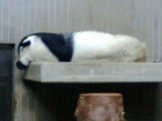 。一番最初にパンダ舎へと進みます。が・・・やっぱり寝てる・・・しかも、背を向けて、不貞寝状態。。