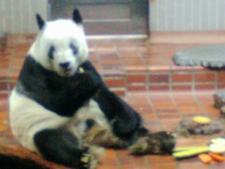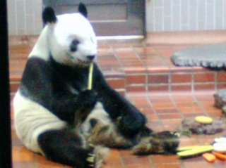 ということで、もと来た道を戻ります。。と、パンダ舎の前には、やけに多い人だかり・・・食事時間です。。寝ていないパンダ