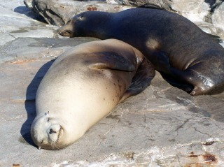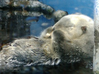 ・・・と、順路にしたがい、ぶらぶらと見学。魚は広い水槽でゆったりと泳ぎ、動物たちは日向で昼寝中