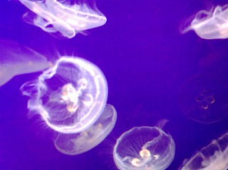 へ。3種のペンギンがいますが、フンボルトペンギンがもっとも多く、曇り空の下、ほとんどがのんびりと泳いでいました。片手(片翼?)だけ動かし、横泳ぎしているものもいます。。そして、クラゲ・・・。海の中で出会うと避けちゃいますが、水槽の中をフワフワ漂う姿は癒されます。。