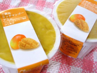宅配便を指定日の1日遅れで受け取ったせいか、解凍後、少し分離しているような感じもありましたが、マンゴー45%使用というだけあって、トロリとした濃厚な味。プリンというよりマンゴーそのものでした。