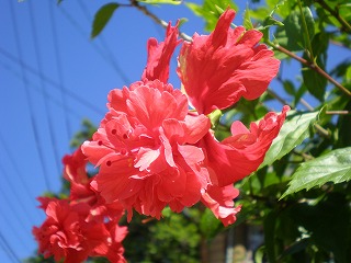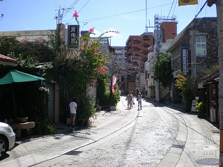 通りに咲くハイビスカスも空の青色に映えてとてもキレイです。博物館の見学後に写真を撮っていたら、その家の住人らしき方が花を2輪プレゼントしてくれました。沖縄の人って温かい・・・改めて思ったひと時でした。
