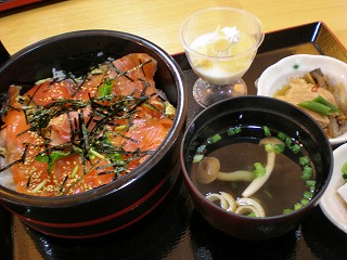 敷地内にあるレストラン・ホワイトテラスにて昼食。限定30食というウィスキー樽の紅マス燻製ちらし寿司をいただきました。燻製された紅マスは香りが良くてやわらか。美味しかったです。