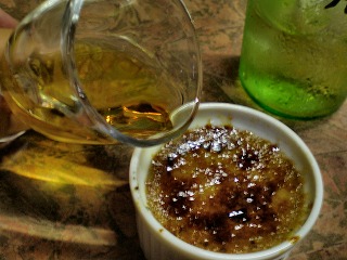 、自家製味噌を使ったお味噌汁も美味しくいただき、あっという間に時間が過ぎていきました。そして、デザートはやっぱりコレ!クリームブリュレにウィスキー(白州18年)をかけていただきます。この食べ方を知ってからは、ウィスキーのないクリームブリュレはちょっと物足りない…そんな風にさえ思ってしまいます。。