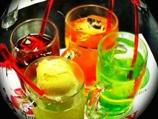 各リキュールを使って完成したリッキーは、ルジェカシスリッキー、アベロールリッキー、ミドリリッキーの3種。また、その後に、いただいたひんやリッキーは、バニラアイス
