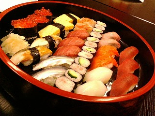 続いて、懇親会のため、自分のお好みリッキーを1杯作り、隣室へ移動。懇親会場には、お寿司やフルーツなどが並び、再度乾杯~!!本日、6杯目のリッキーです。。