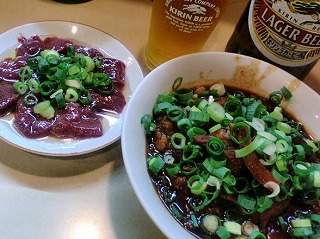 まずはサルベージ。大きなお鍋で煮込まれたスジやテールらしきお肉がごろごろっと入った味噌煮込みのような感じ。お鍋の底からお肉をすくい上げるのでサルベージというらしいです。そして、もう一品は生レバー。どちらもビールに合うー!あっという間に完食でした。。
