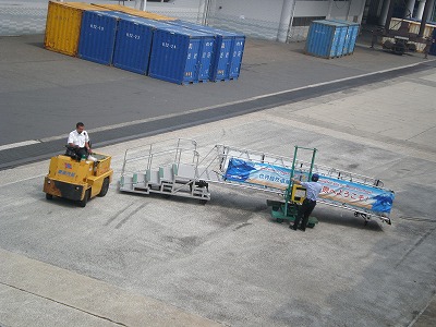 出港の汽笛とともに、乗船口から階段が外されます。次第に遠くなっていく桟橋と東京の風景。。飛行機の旅では味わえない何とも言えない雰囲気があります。