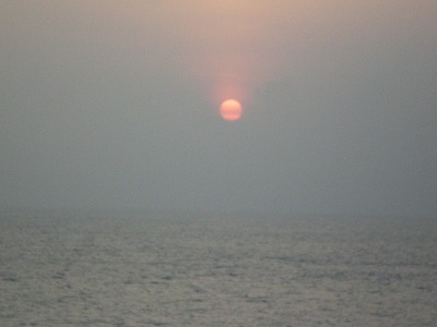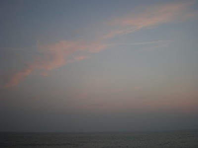 出港後、何度かお昼寝をし、デッキに夕焼けを見に行きました。残念ながら、雲が低くて海に沈む夕日は見られませんでしたが、雲がほんのりと赤くなっていくのをボーっと眺めていました。