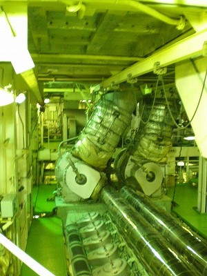 暑くて、狭くて、騒音という環境にあるエンジンのある場所へ。入った瞬間というかドアを開けた時点で、本当に暑くてうるさい。。でも、見学に参加しないと見られない貴重な場所を見ることができました。。