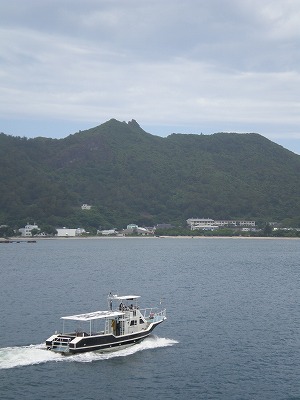 デッキにあがると父島が見えてきました。昨日の朝10時に出港して到着は定刻の11時30分。あと少し・・・とっても長いと思っていた船旅も、もう少しで終了です。