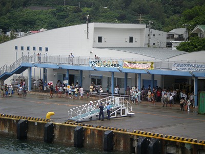 島に近づくと、ボートが並走。「いらっしゃ~~い!」という声とともに迎えてくれました。また、父島の船の待合所でもダイビングサービスや宿の方たによるたくさんのお迎え。徐々に近づく景色をデッキから眺めながらの到着でした。