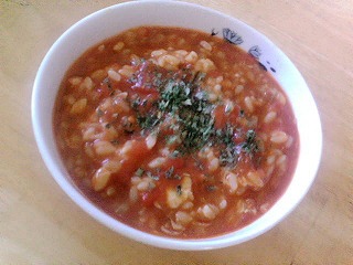 今まで食べたカレーで一番辛いかも・・・私にとっては10段階中の辛さ10です。。で、このまま食べ続けては大変なことになると思い、ご飯とチーズを追加。。それでもまだ辛い。。結局・・・トマトを加え、カレー味のトマトリゾットに作り替え。。量は倍以上になったけど、辛さは少し和らぎ、なんとか食べられました。でも、しばらくは、カレーはちょっと遠慮したい。。