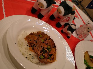 マロンさんがデモされたメニュー2品。マロン流オージー・ビーフで簡単ハヤシライスとオージー・ローストビーフ マロン風焼き味噌ソース。最近、薄味に慣れているせいか、どちらも味付けが濃い目…塩味がちょっときつかったのが残念。。家で作る時には塩少なめで挑戦したいと思います。
