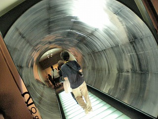 見学途中にあるトンネルのような通路。以前使っていた貯蔵タンクを利用したものとのこと。丸くて銀色に光るトンネルは、どこか特別な場所に行けるような・・・映画などで見る未来の世界のような・・・そんな雰囲気のある場所でした。