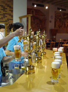 グラスをもとに戻しながらビールと泡の比率が7:3になるように注ぐ■武蔵野ビール工場 http://www.suntory.co.jp/factory/musashino/index.html