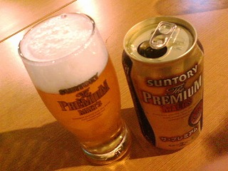 2杯目のザ・プレミアム・モルツ(黒)を飲み終える頃にテーブルに配られたのはビール缶。で、ビールの美味しい注ぎ方についても教わりました。手順通りにやってみると、細かい泡立ちの7:3のビールが完成。家で飲む時も手間を惜しまず美味しく飲みたいものです。。