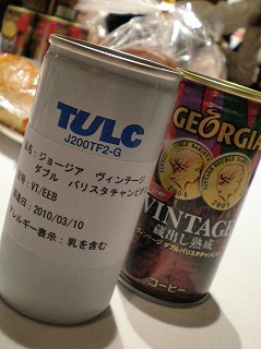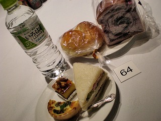 テーブルの中央の上には新缶コーヒー。そして、参加者1人ずつに軽食が用意されていました。お腹が空きすぎて会場に来る前に軽く食べて来たので、全部は食べきれず、お持ち帰り。。パンはTVチャンピオンで優勝したペニーレインのものだそうです。