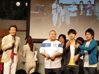 トークショーのゲストには、缶コーヒー作りに携わったブラジルのバリスタチャンピオンの女性お2人と辰巳琢郎さん、ジューシーズが登場。