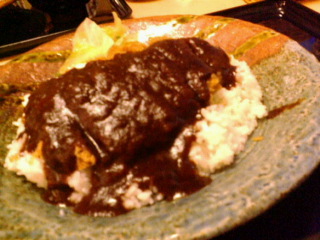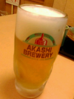ご飯の上に、かつ、そしてデミグラスソースがたっぷり。ソースの味はちょっと濃い目で、ボリュームあります。結構お腹いっぱい。。一緒にいただいた地ビール・明石ビールが進む味でした。