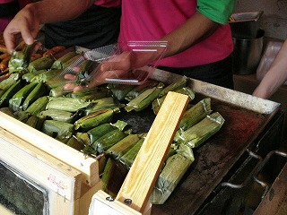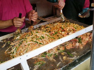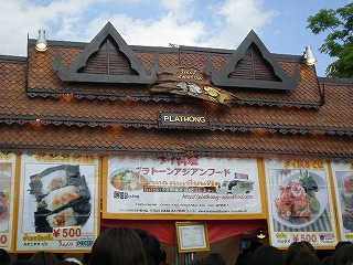 友だちとはいったん別れ、それぞれ気になるメニューを購入して集合することに。で、私は看板の写真メニューが気になった「プラトーンアジアンフード」へ。パッタイともち米とココナッツの焼き菓子カオニヤオ・ピンを手にし、待ち合わせ場所へと急ぎます。