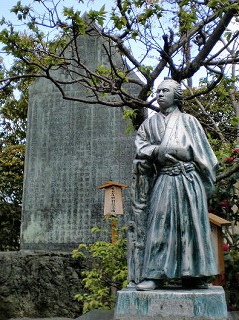 寺田屋の庭には龍馬像があります。像はそれほど大きくありませんが、龍馬ゆかりの地であることを再確認です。。