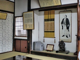 宿の各部屋には龍馬と一緒に時代を生きた人たちの肖像画や写真、書などが展示されています。また、部屋の柱には刀痕も残されています。が…寺田屋は鳥羽伏見の戦(1868年)に焼失し、現在の建物はその後に再建されたもの。。龍馬とはまったく関係のない刀痕です。。